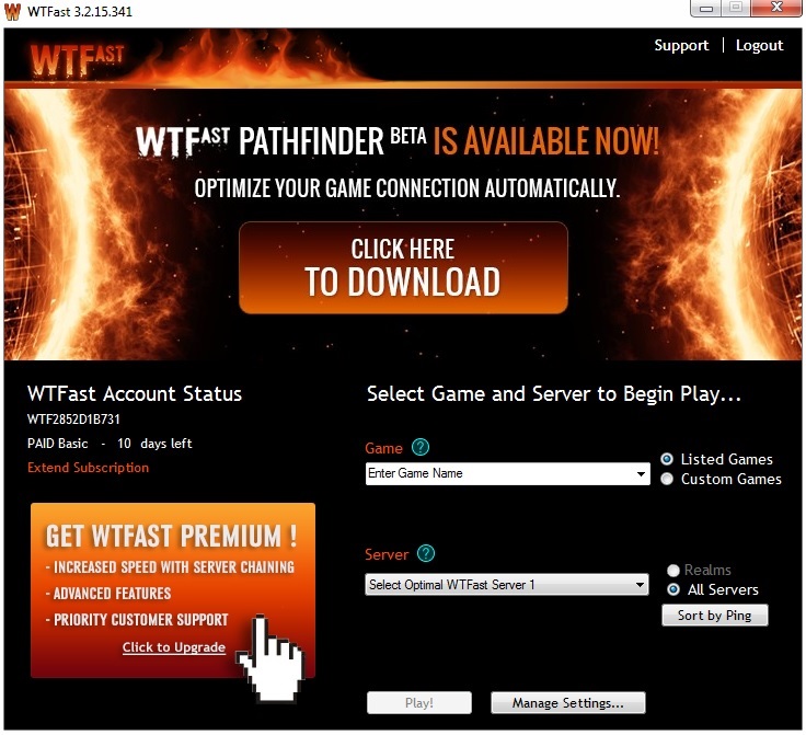 Also, you're using trial version of WTFast, so it doesn't give you best connection-servers and so on.